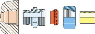 DIN标准卡套式接头,接头连接不需专门工具,可直接装配,钢管尺寸从Ф4~Ф42压力最高可达630公斤